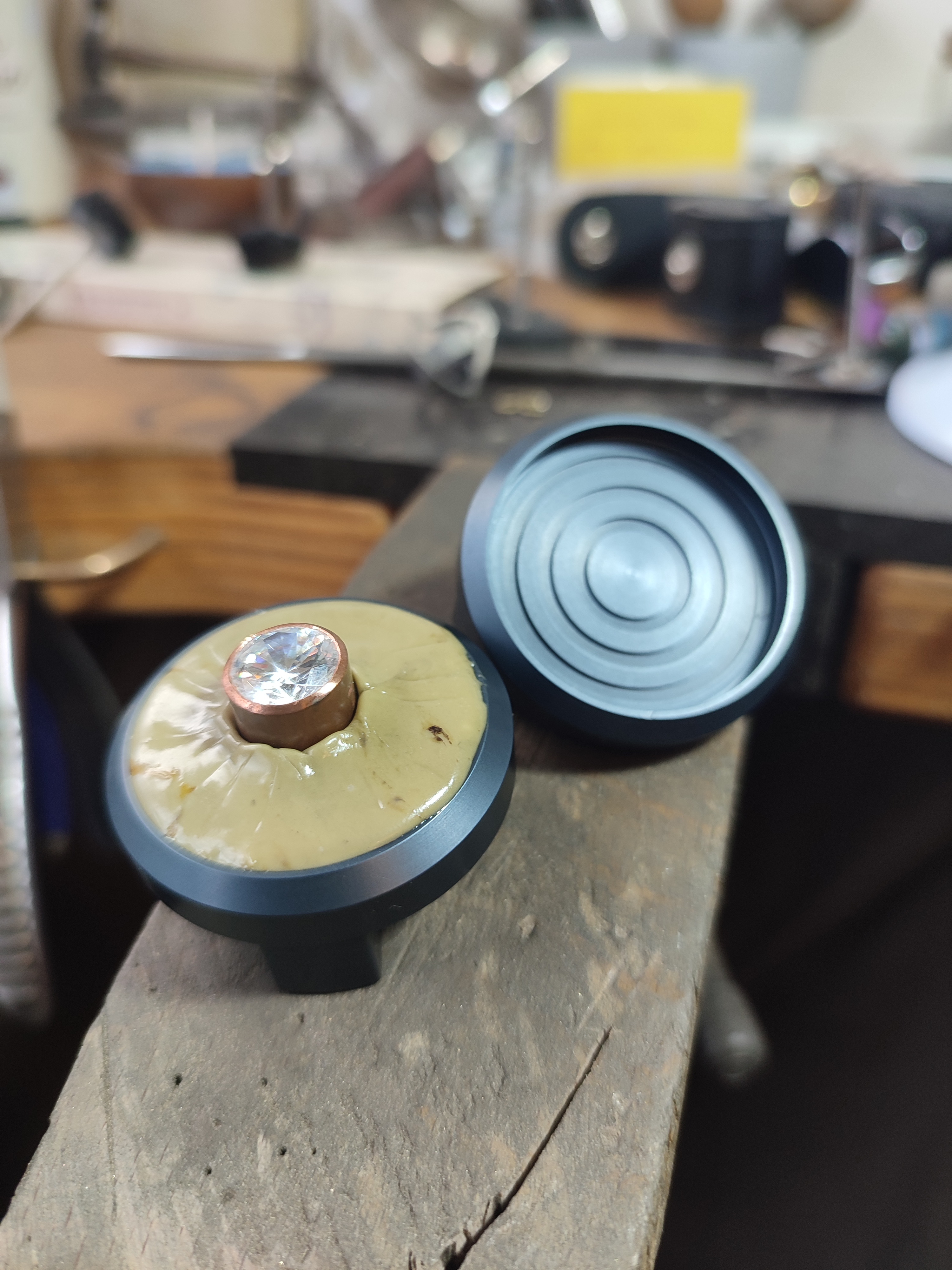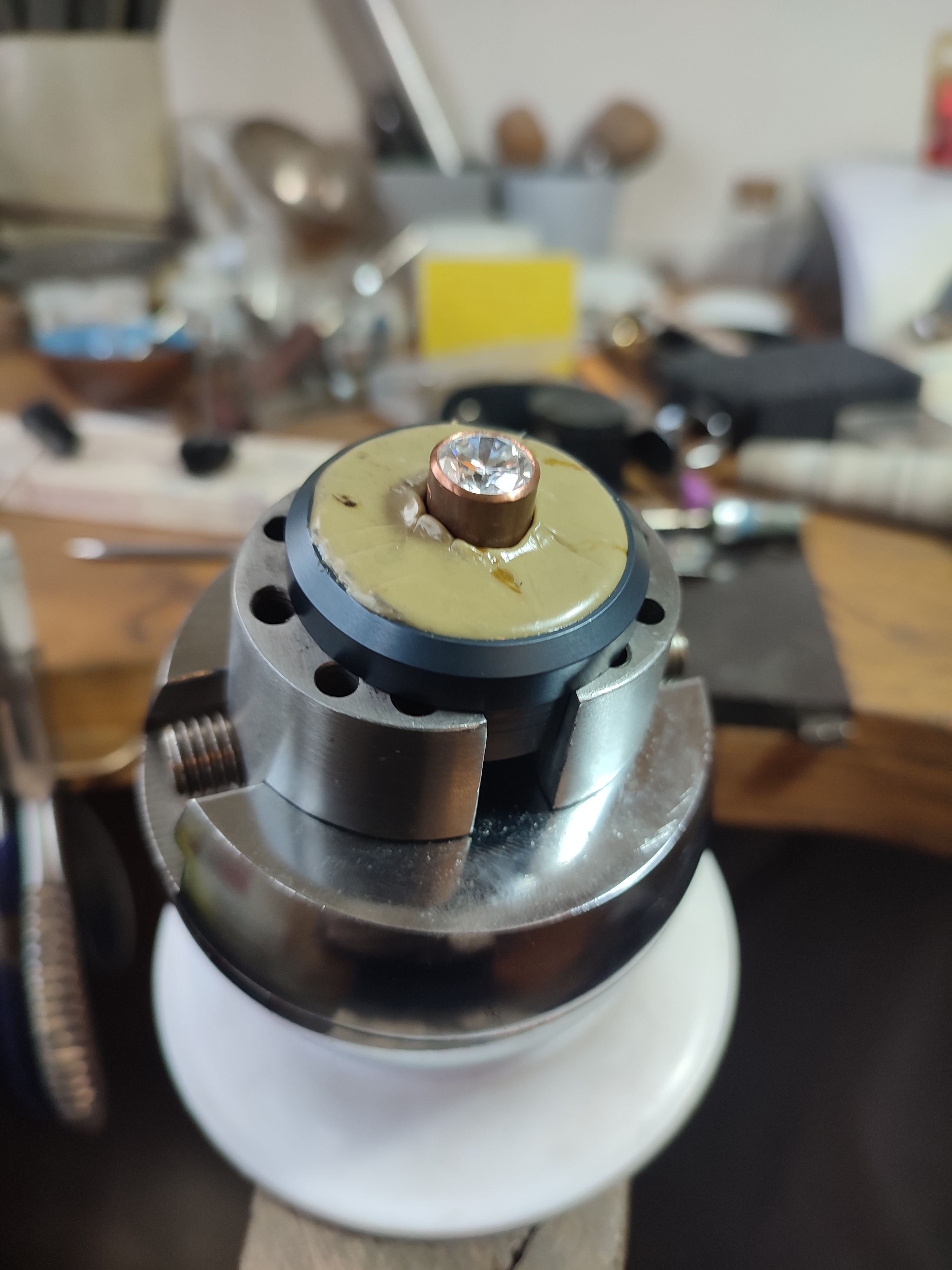 Der Gravierteller dient als zuverlässige Aufnahme für Kitt oder Thermoloc und wird direkt in der Gravierkugel oder im Kitstock gespannt.