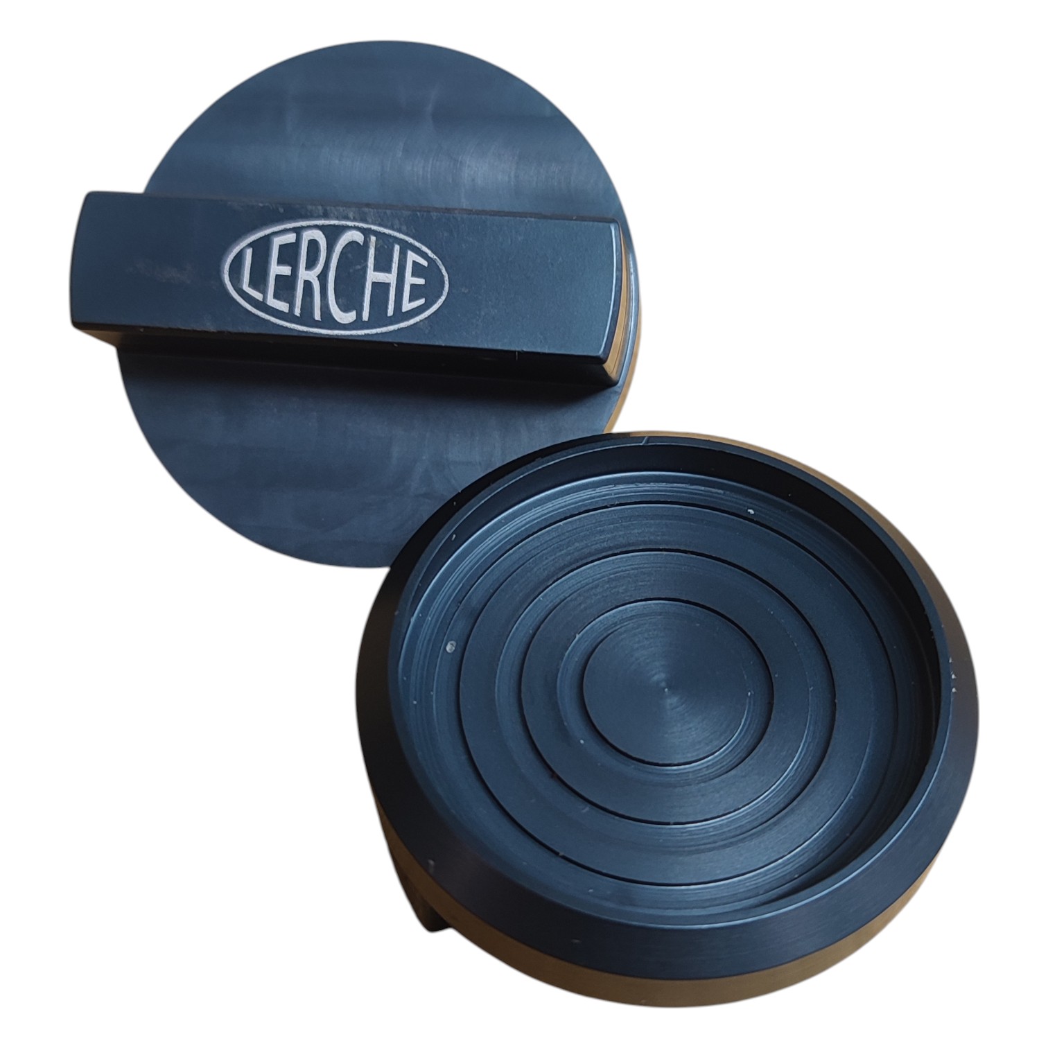 Gefertigt wird der Teller aus Aluminium auf CNC-Maschinen in unserer Werkstatt. Die eloxierte Oberfläche ist robust, unempfindlich und fügt sich unauffällig in den Arbeitsplatz ein.