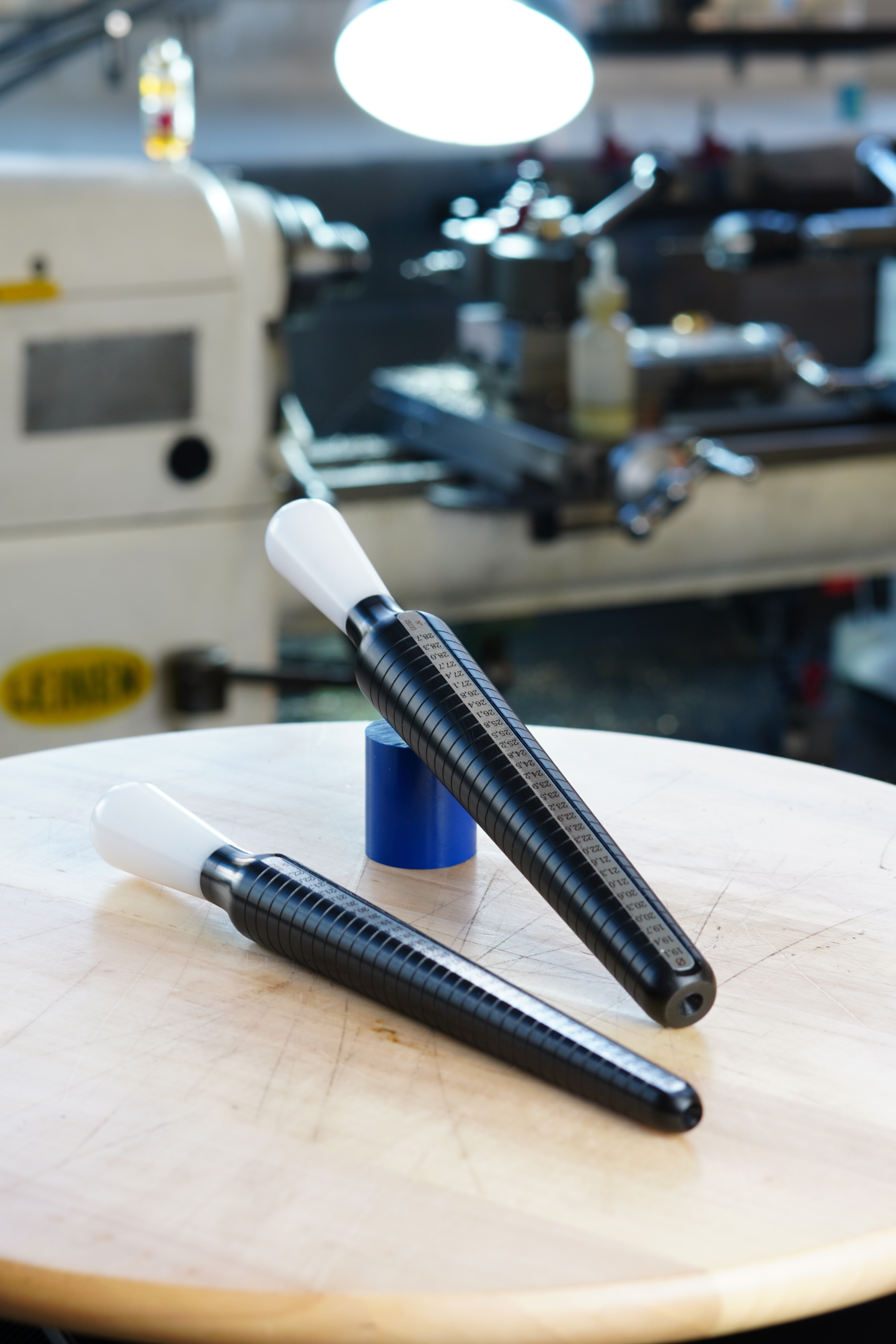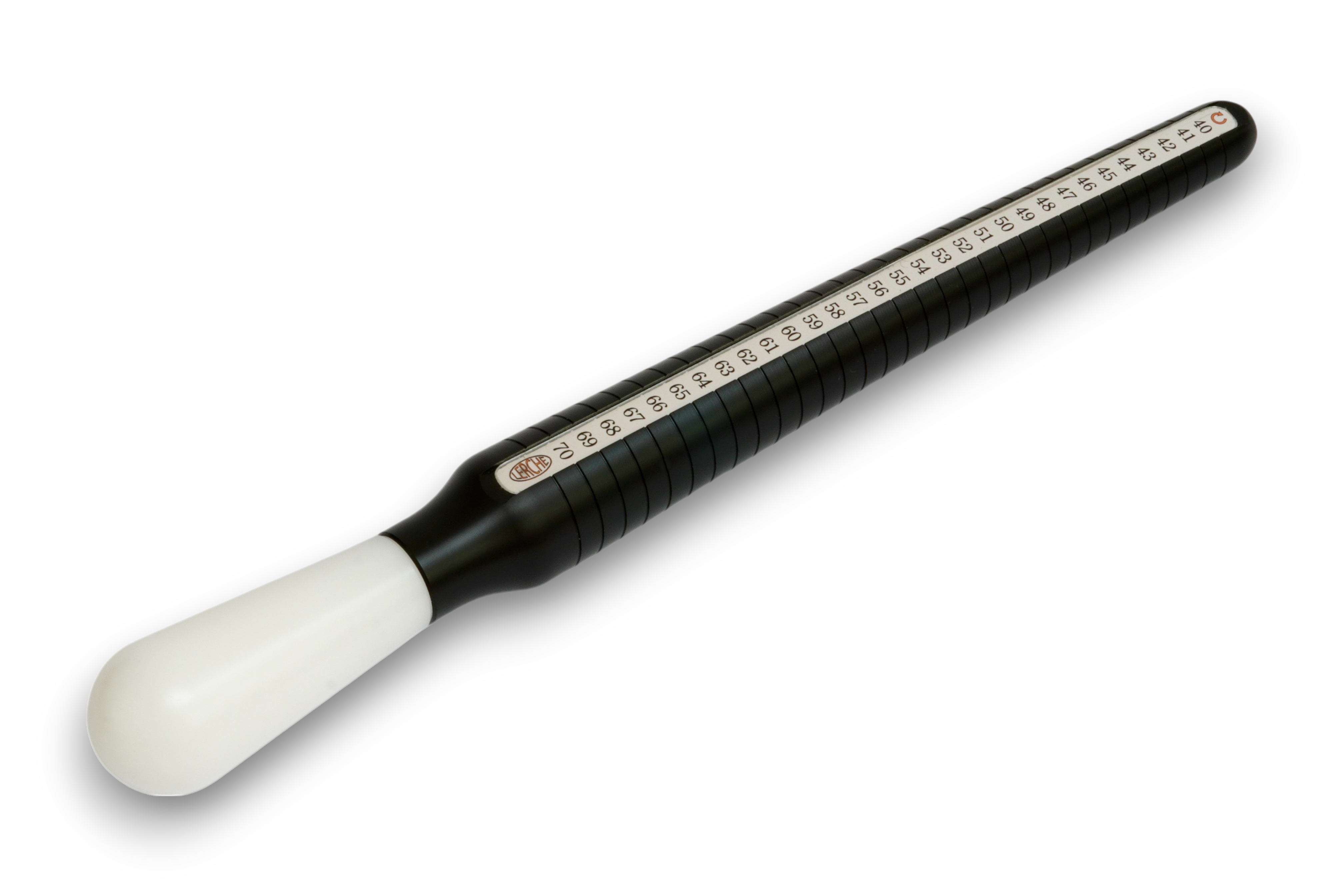 Jeder Ringstock ist mit einer gut ablesbaren Skaleneinteilung versehen, die sowohl die Ringgröße als auch den entsprechenden Durchmesser anzeigt. Der schwarze Messdorn sorgt in Kombination mit dem weißen Griff für einen deutlichen Kontrast und eine komfortable Handhabung.